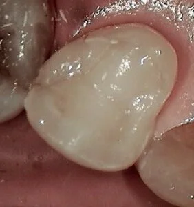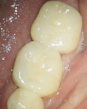 Very large amalgam replaced with a porcelain fused to gold crown.