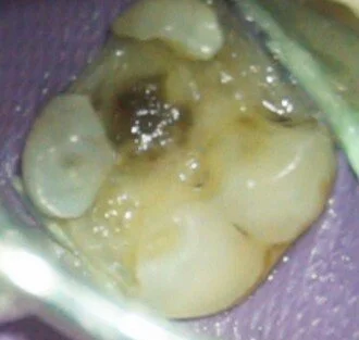 Amalgam Removed - you can see the cracks and weak thin corners of the tooth left.